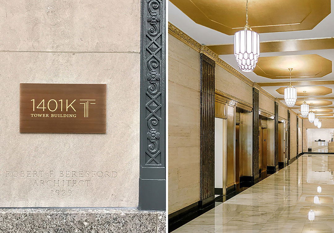 The existing Tower Building, located at 1401 K Street NW, was built in late 1929. After 87 years, this iconic building needed an authentic restoration. The building facade consists of Indiana limestone and face brick installed on a masonry support system loaded to the floor slabs. Rugo performed an entire stone facade restoration. The building remained open and fully occupied with tenants during the construction process as a whole.