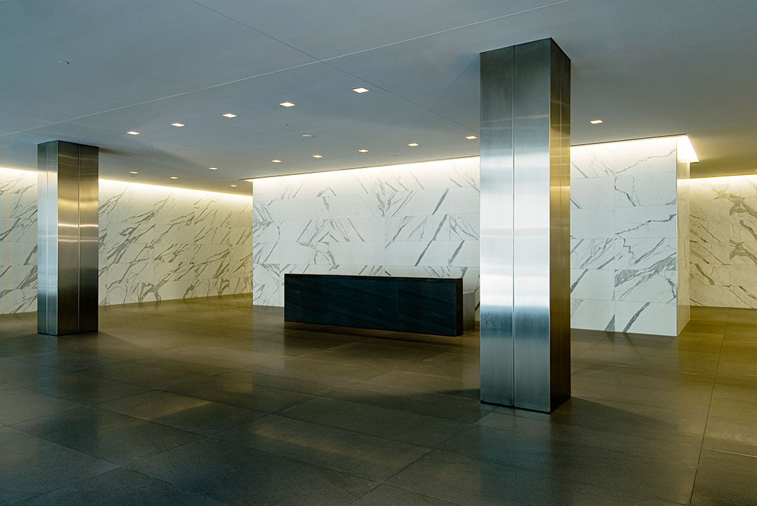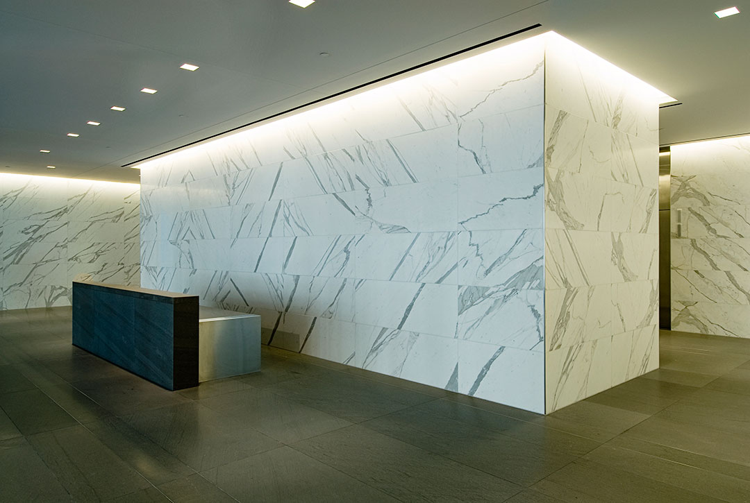 Services: Design, fabricate, and install travertine exterior cladding & lobby