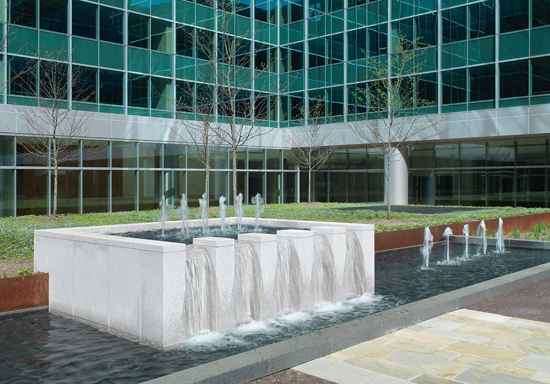 The exterior water feature was part of the overall re-positioning of this building, which was once the headquarters for the USDOT.