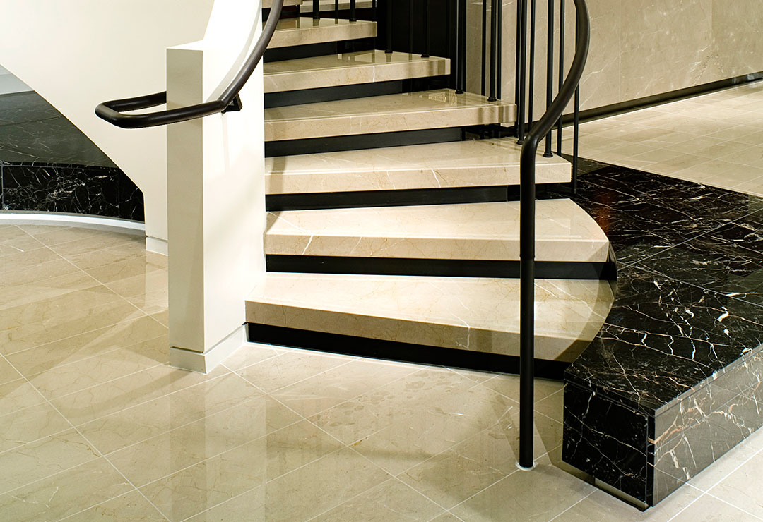 Corinthian Beige marble was also used for the paving within the Dewey Ballantine lobby, and at the reception desk. A total of approximately 4500 square feet of Corinthian Beige marble was used to complete this lobby. Winner 2007 MIA Award of merit for Interior Stone.