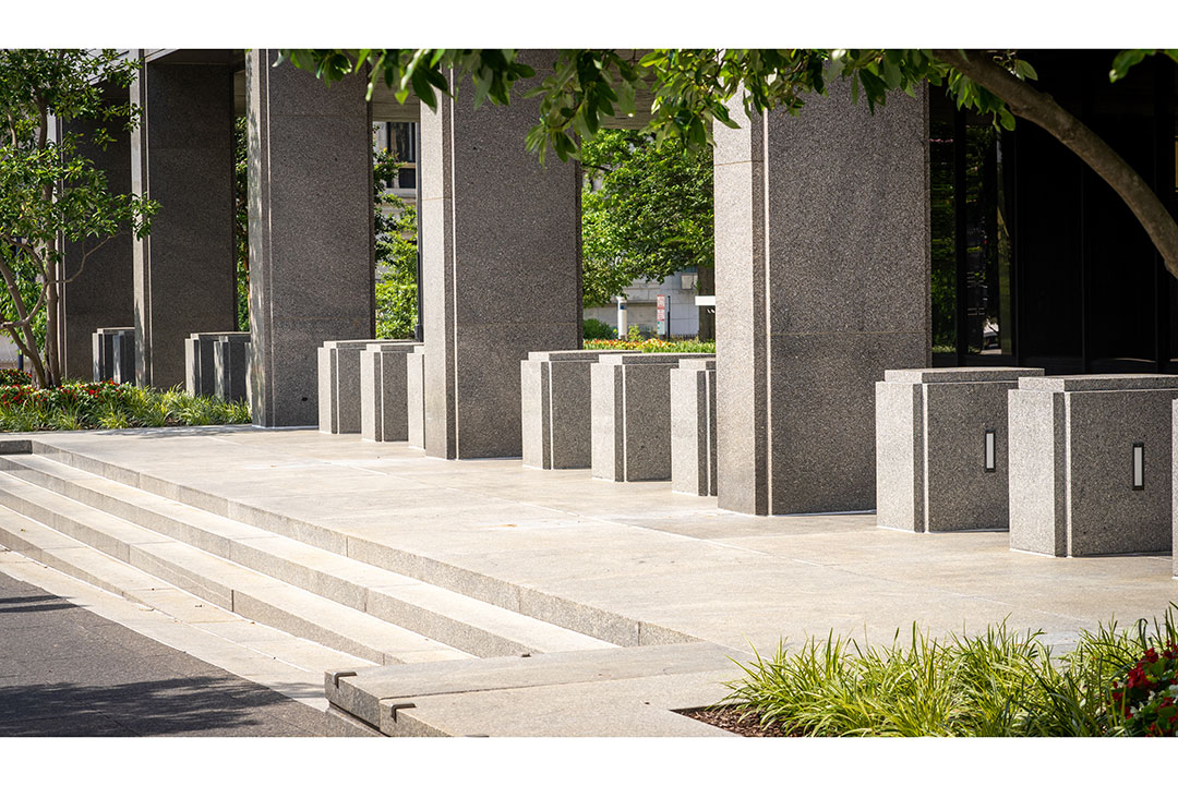 This project is in the heart of Washington, DC, with proximity to the Old Executive Office Building. The seven-story building was initially constructed in 1962 and later renovated between 2014 and 2016. Since the building was open and occupied during the renovation, the project used phased construction to work around timing restrictions. Because of this, the work was performed at night. To install the building’s uniform, granite-clad facade, Rugo created a custom anchorage system to overcome a tight wall face and cavity assembly. As a result of Rugo’s anchorage system, the project was completed safely.