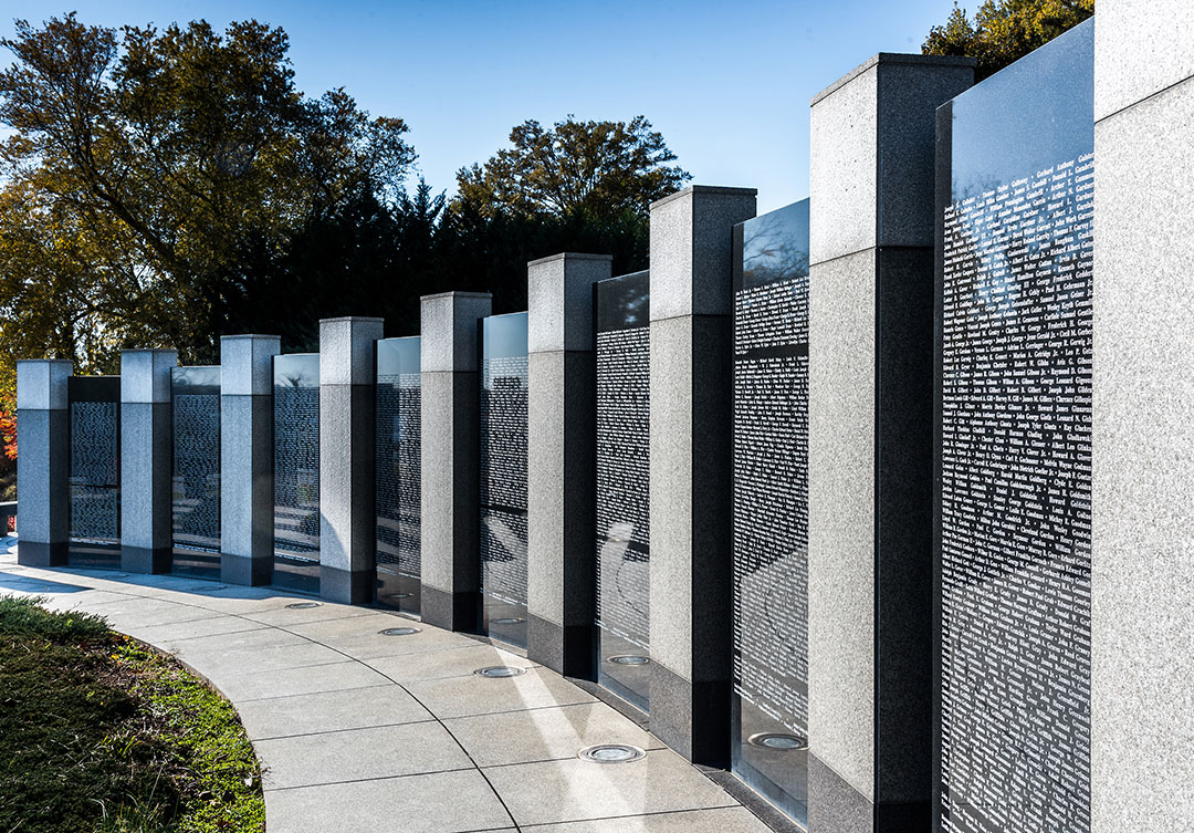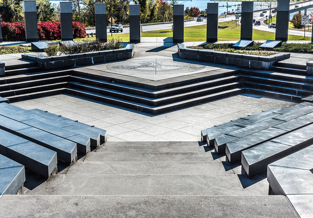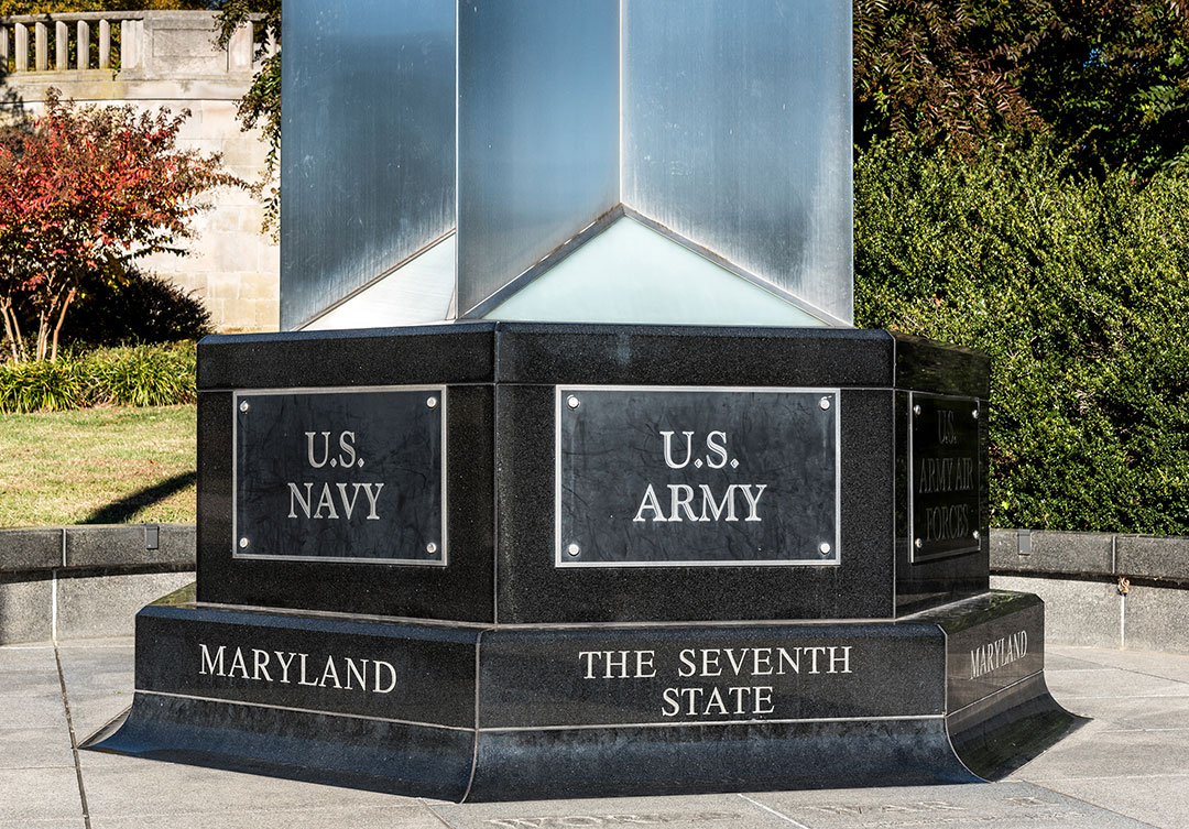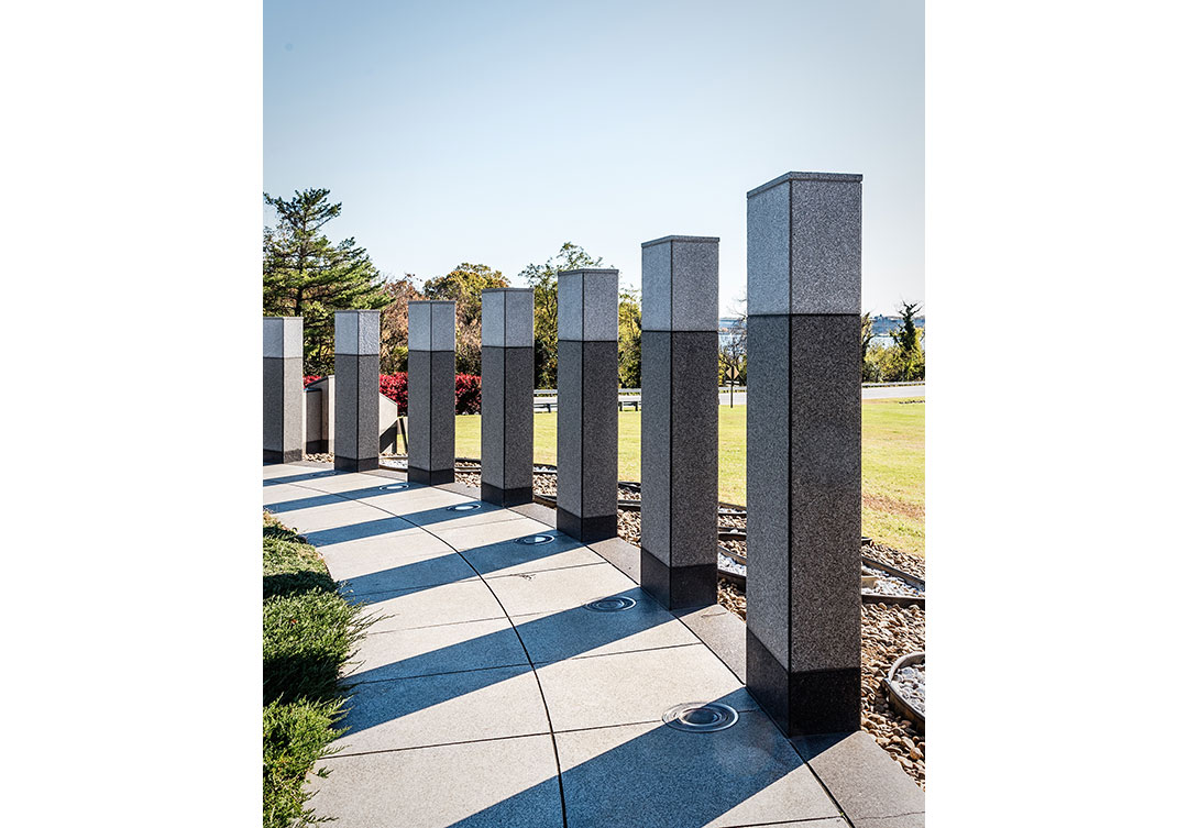 The design calls for a series of stone-clad columns which straddle large upright tablets displaying the over 6,000 casualties form Maryland. Rugo was instrumental in offering design savings suggestions for material types and methods pf engraving. The project included custom sandblasted developed globes for both the Atlantic and Pacific theatres. The granite elements and their engraving is a lasting memory to these brave men and women who gave their lives in defense of freedom.