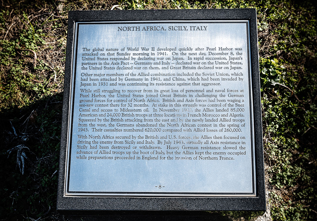 The Maryland WWII memorial was a tremendous collaborative experience executed in the early years of Rugo Stone. This memorial is dedicated to the casualties of Maryland, who perished and is located on Route 450, overlooking the Naval Academy.