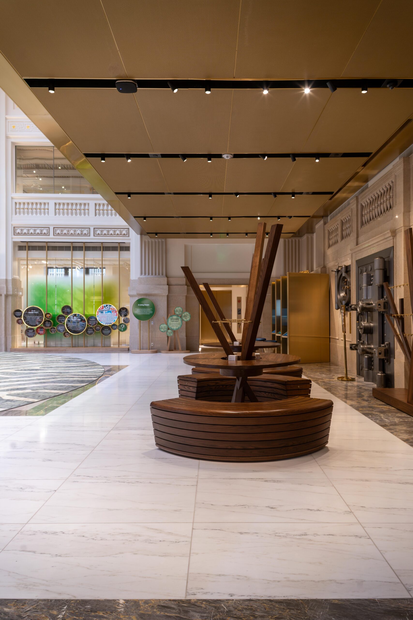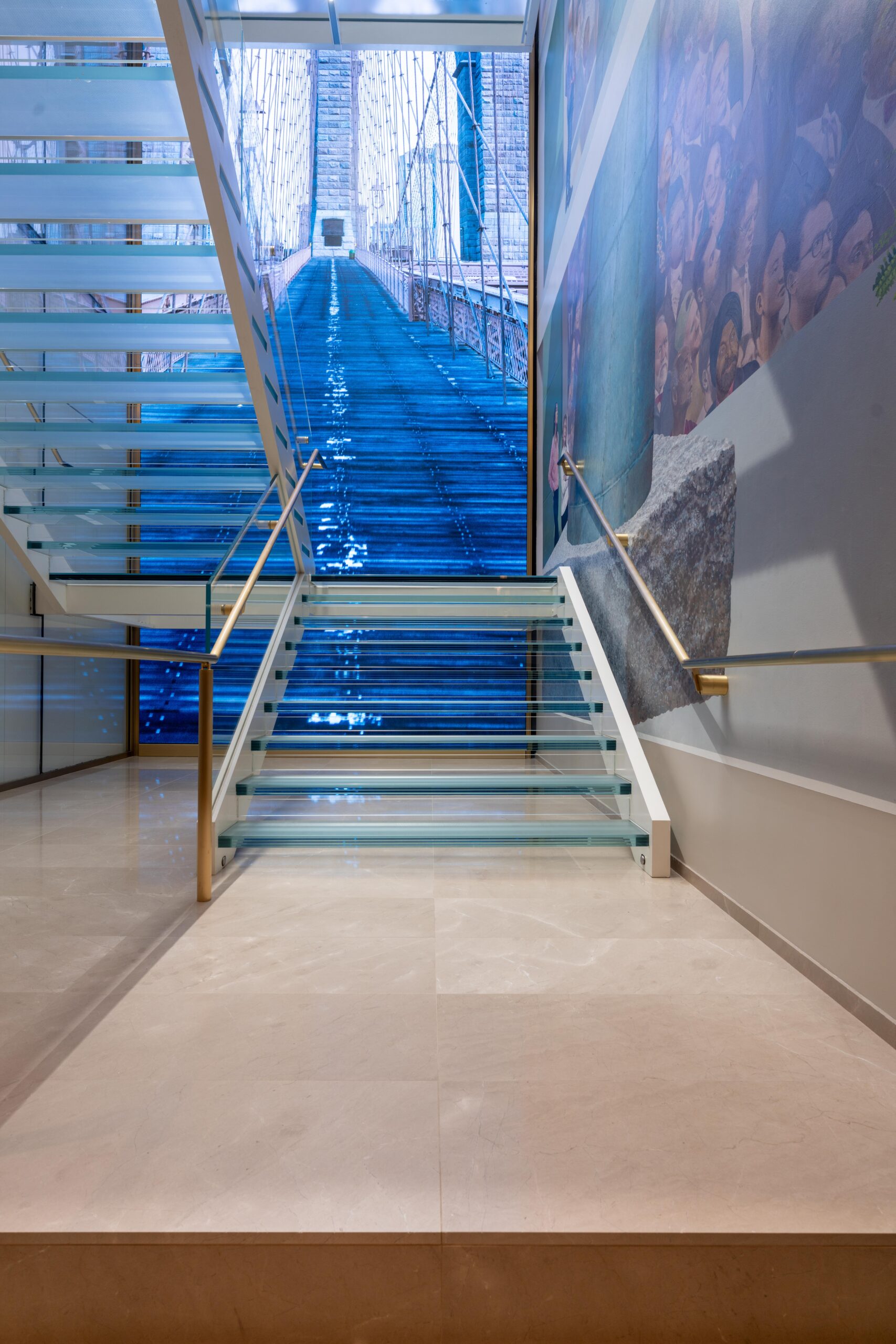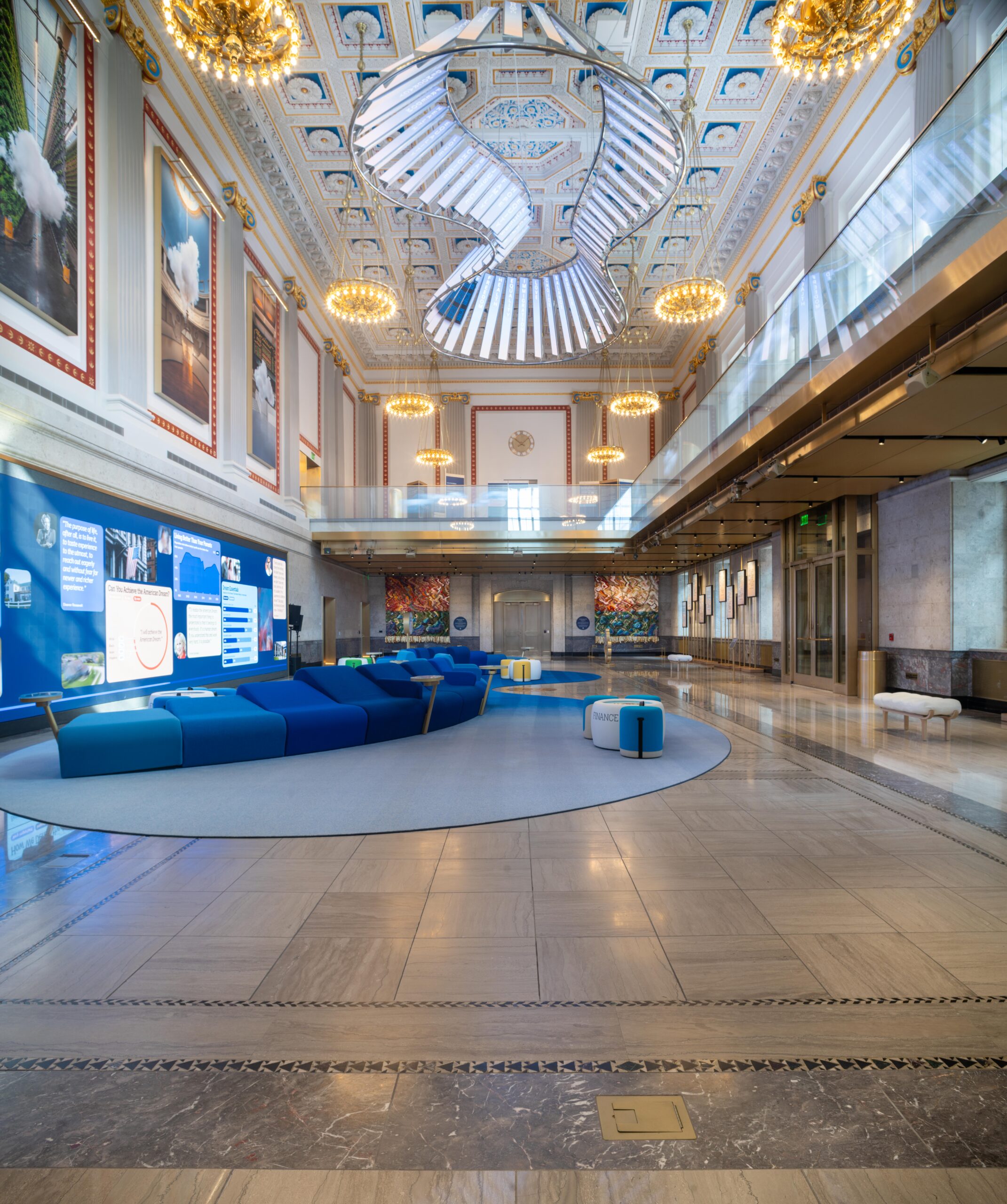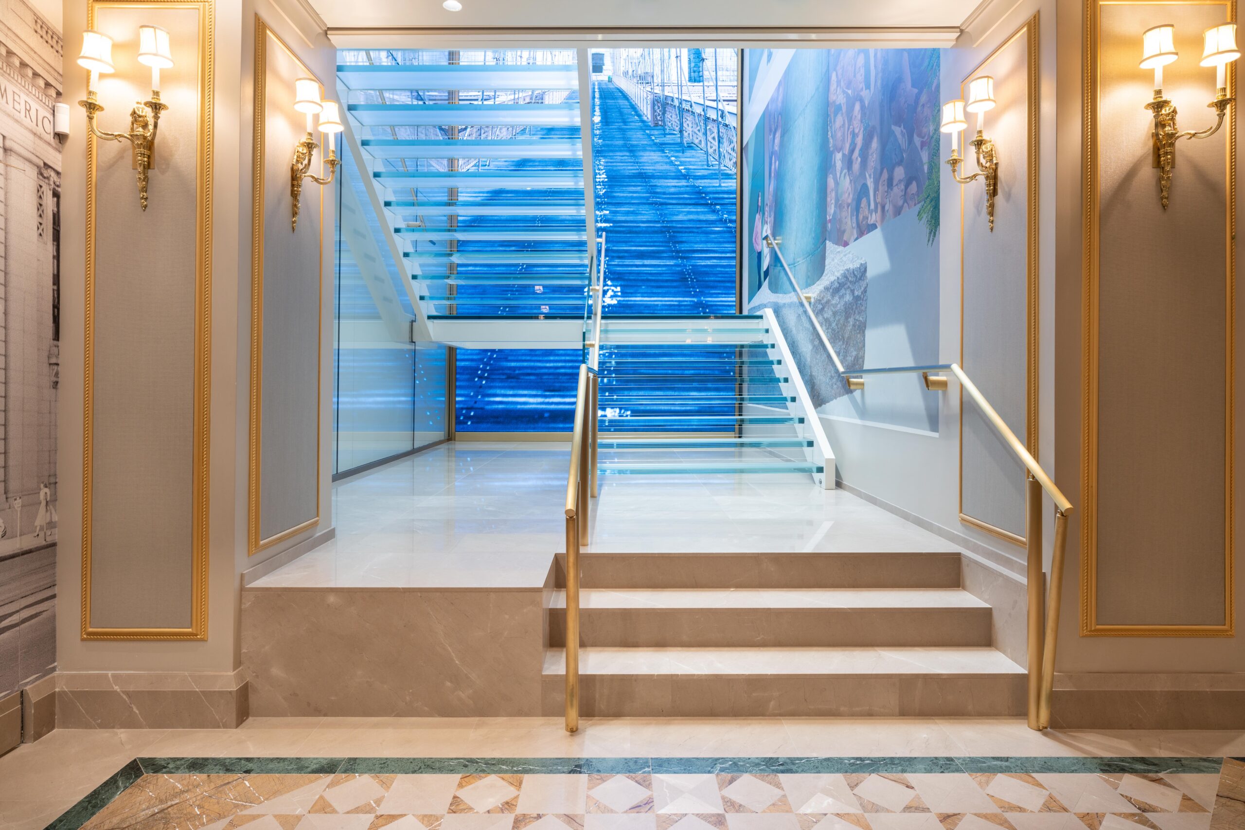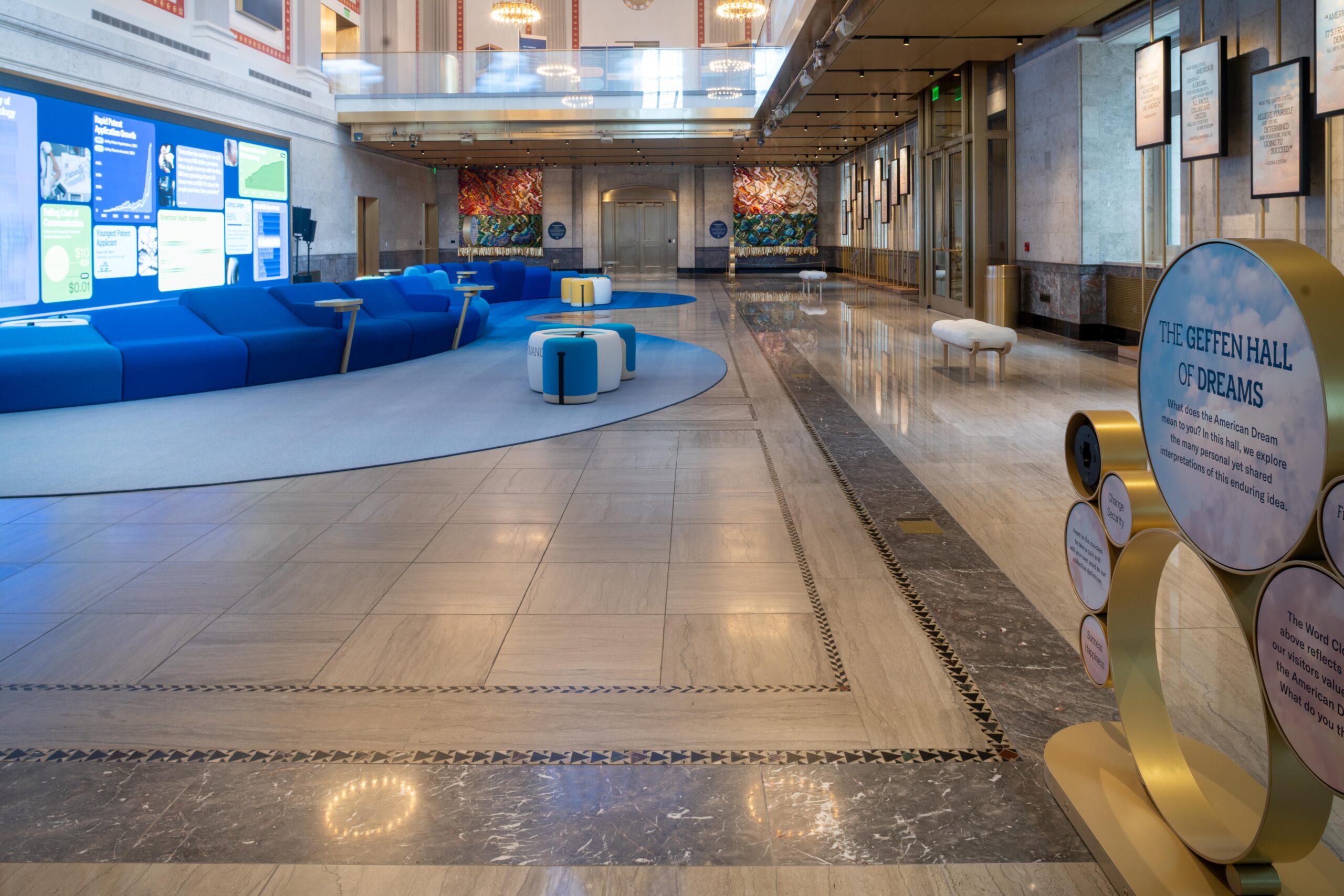 The Milken Center for the Advancement of the American Dream (MCAAD) is one of Washington, D.C.’s newest museum destinations, dedicated to exploring the ideals, opportunities, and stories that define the American Dream through immersive and interactive exhibits. The museum occupies two National Register–listed former bank buildings, prominently located across from the White House and the U.S. Treasury, along with a third historic structure. Select historic interior elements were removed, salvaged, restored and re-installed along with new stone elements, while the primary stone facades of all three buildings were preserved.
