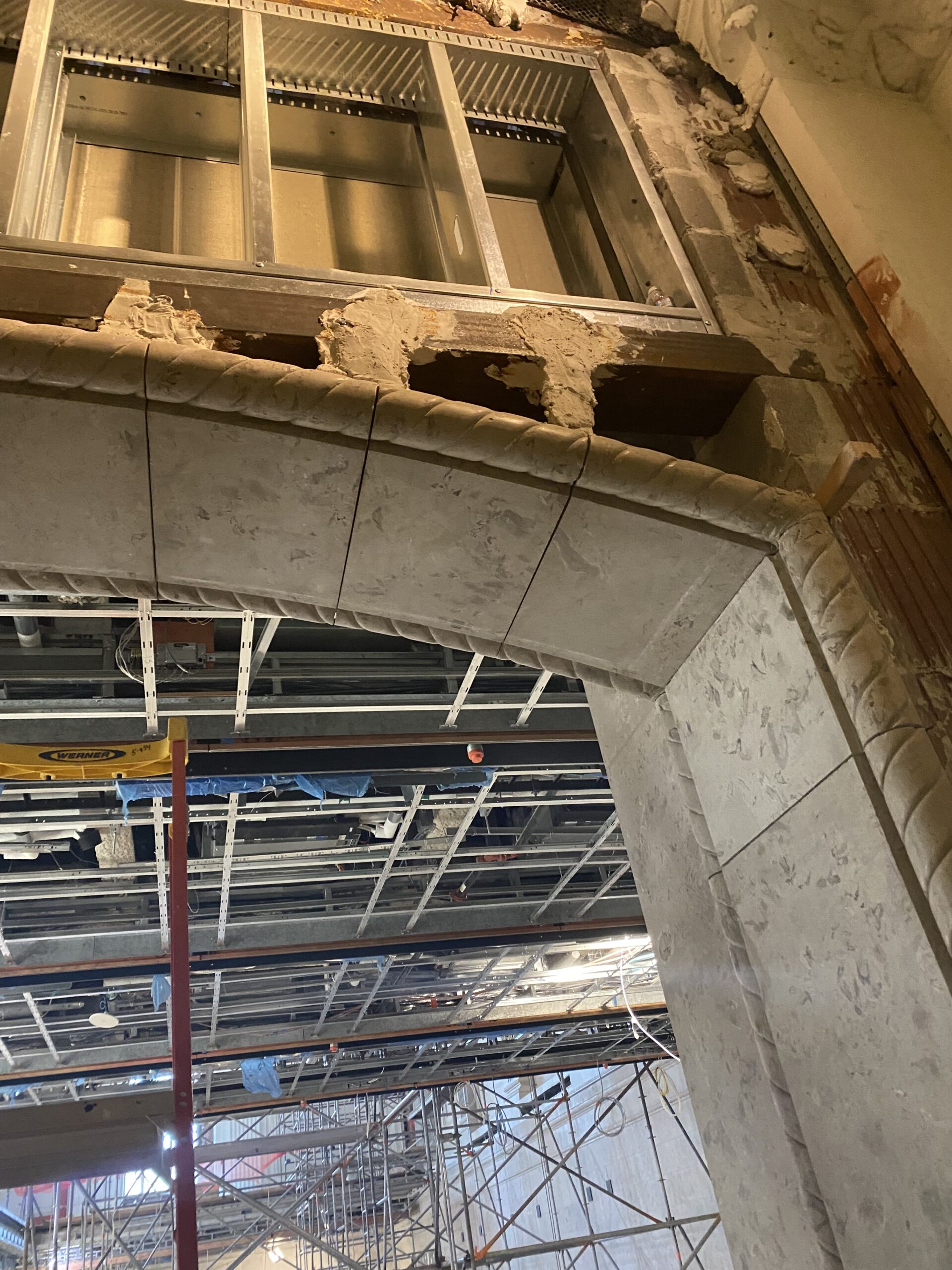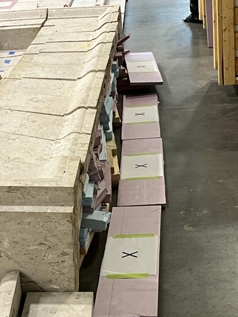 Reinstallation followed a rigorously controlled process guided by salvaged drawings, pre-demolition benchmarks, and documented joint dimensions and profiles. Each stone was returned to its original location, maintaining their original orientation. Final patching and comprehensive cleaning were completed after installation to ensure a seamless, finished appearance. All the stones for the project were drylaid at the factories, reviewed and approved by the architect and owner prior to shipping. In cases where the old stone elements were used along with new stones, the new stones were shipped to the warehouse where the salvaged stones were stored, then drylaid to ensure that alignments were met perfectly and the dimensions were accurate, then reviewed and approved prior to shipping to the job site.