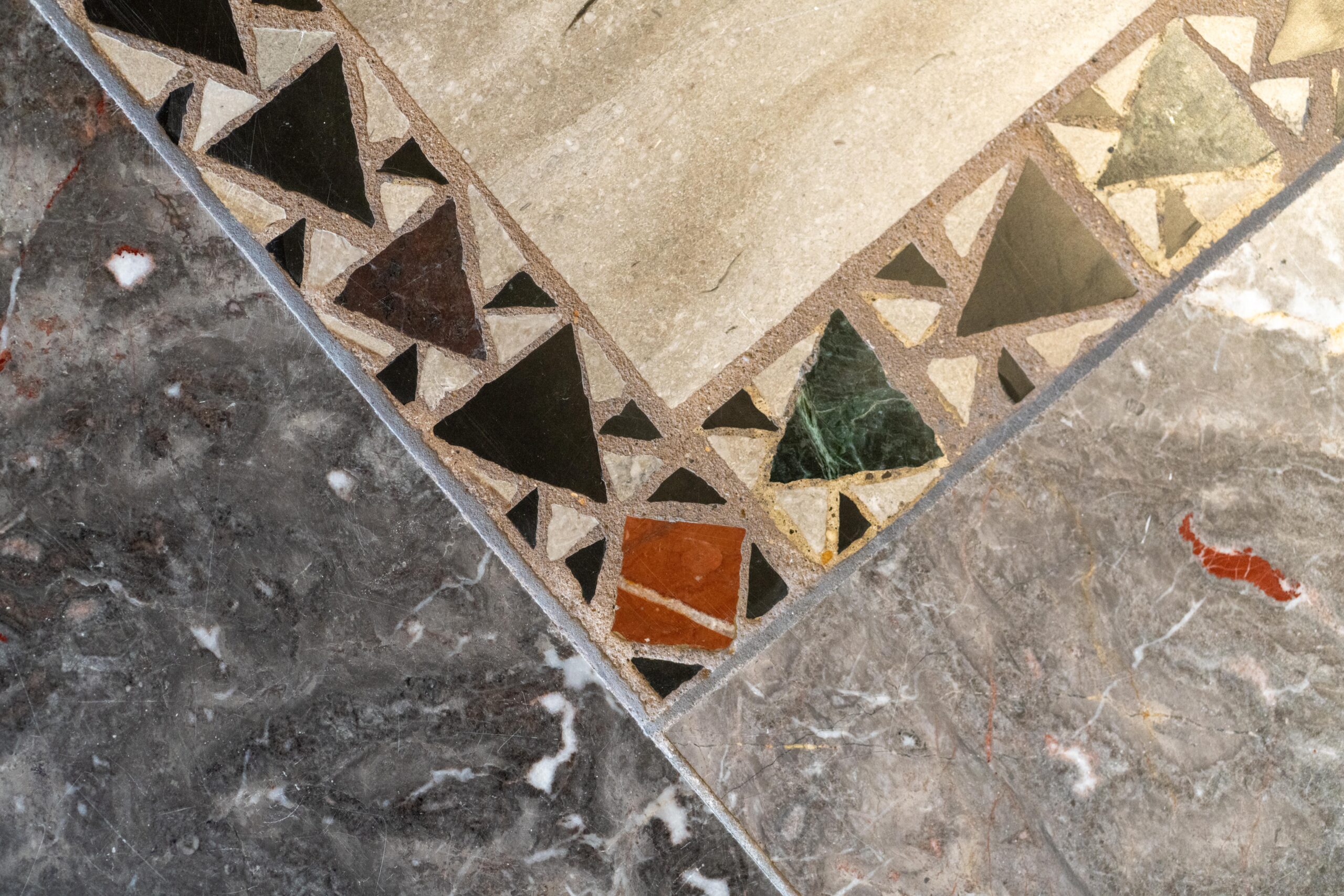 Stone restoration included specialized stain-removal treatments, spot repairs, and the correction of chips, dings, and surface damage, all while preserving the historic patina. Repairs were performed both in situ as well as at Rugo Stone’s facility, depending on the condition and requirements of each stone.