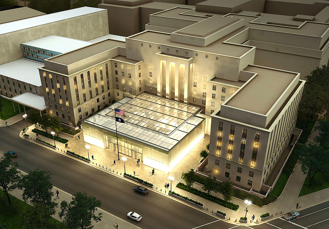 The National Museum of American Diplomacy is located at the State Department Headquarters in Washington, DC. This new infill building sits inside an existing courtyard and serves as a gathering and museum space for the Owner. The Architect Hany Hassan FAIA has created a masterful design.