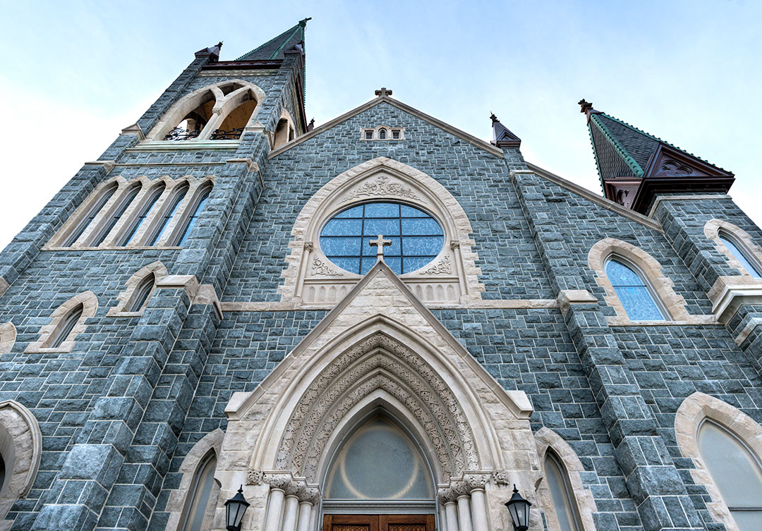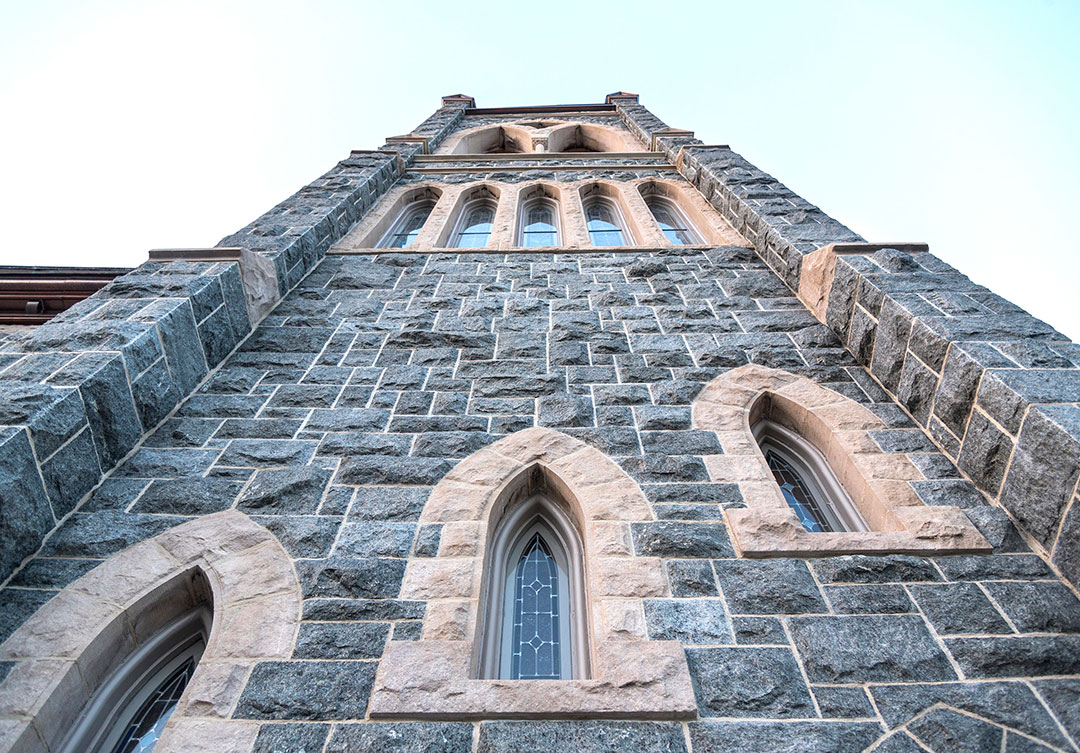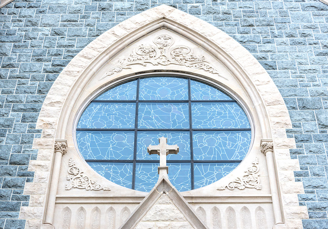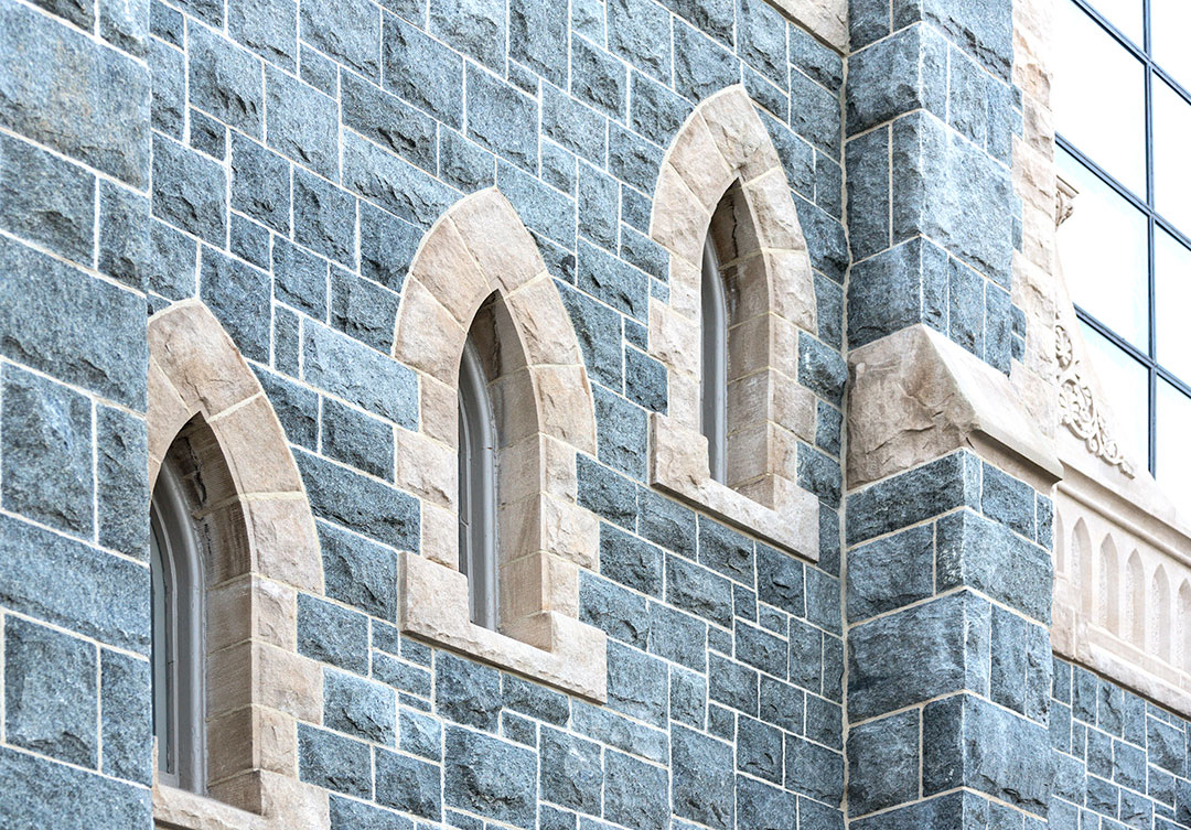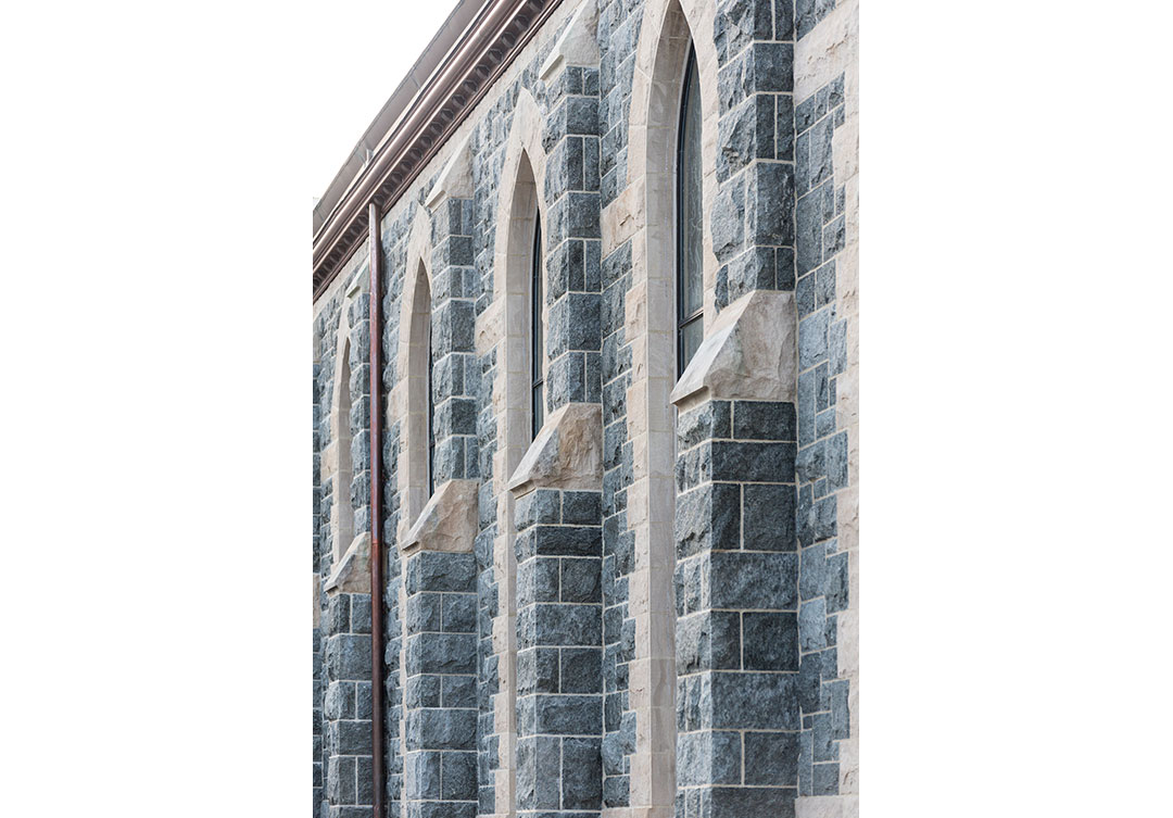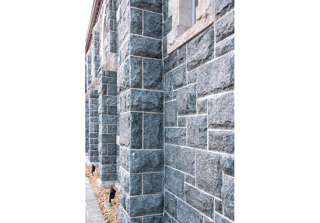 This project was a unique restoration of a historic church. It’s one thing to build a new church with a granite rock-faced veneer. It’s altogether different when the existing veneer is failing, and the brick backup structural walls were to remain in place at the same time the Church remains open throughout the project.