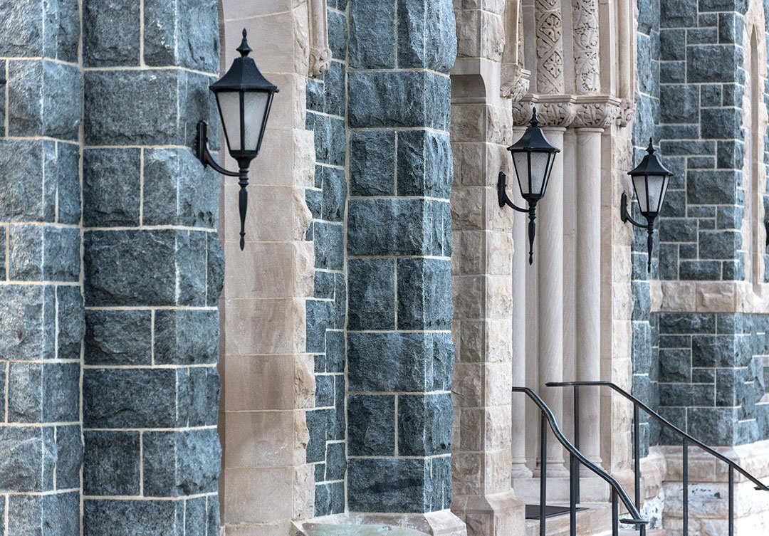 Not many natural stone installers other than Rugo have the experience or knowledge to take on a project like this. The failing green serpentine installed in the late 1800s by Irish immigrant laborers became such a life safety issue that the Church decided to replace the exterior serpentine hand-cut pieces and replace them with new green granite.