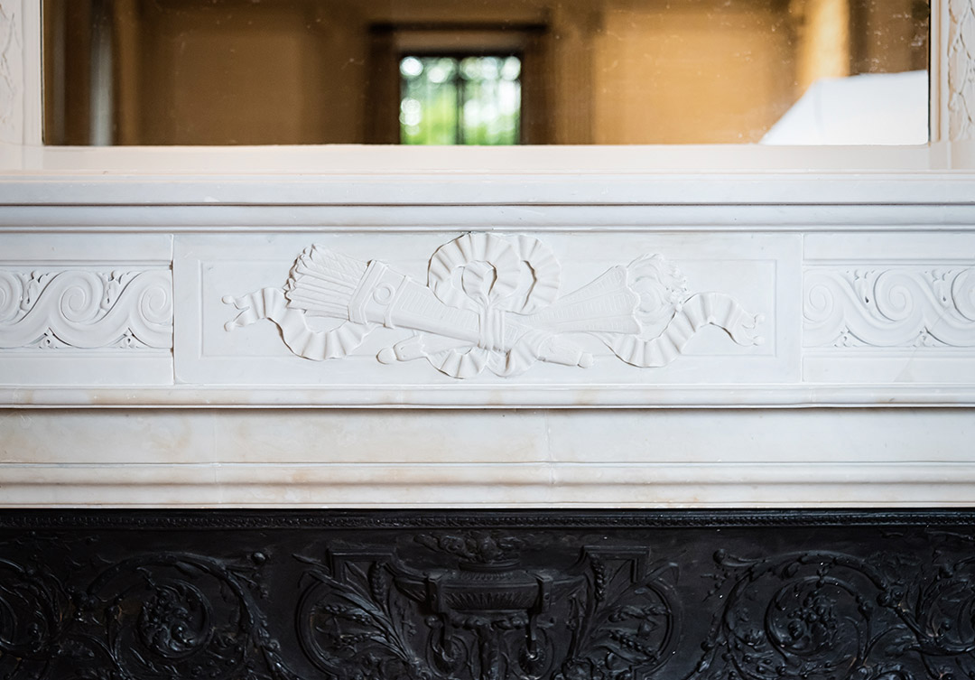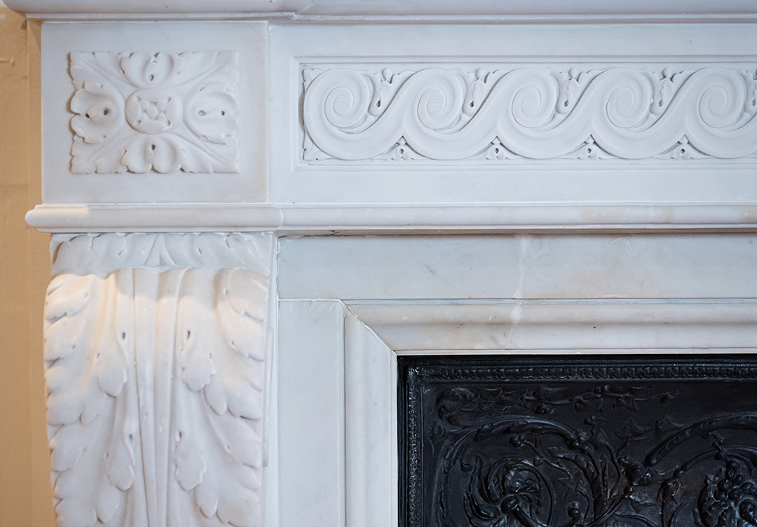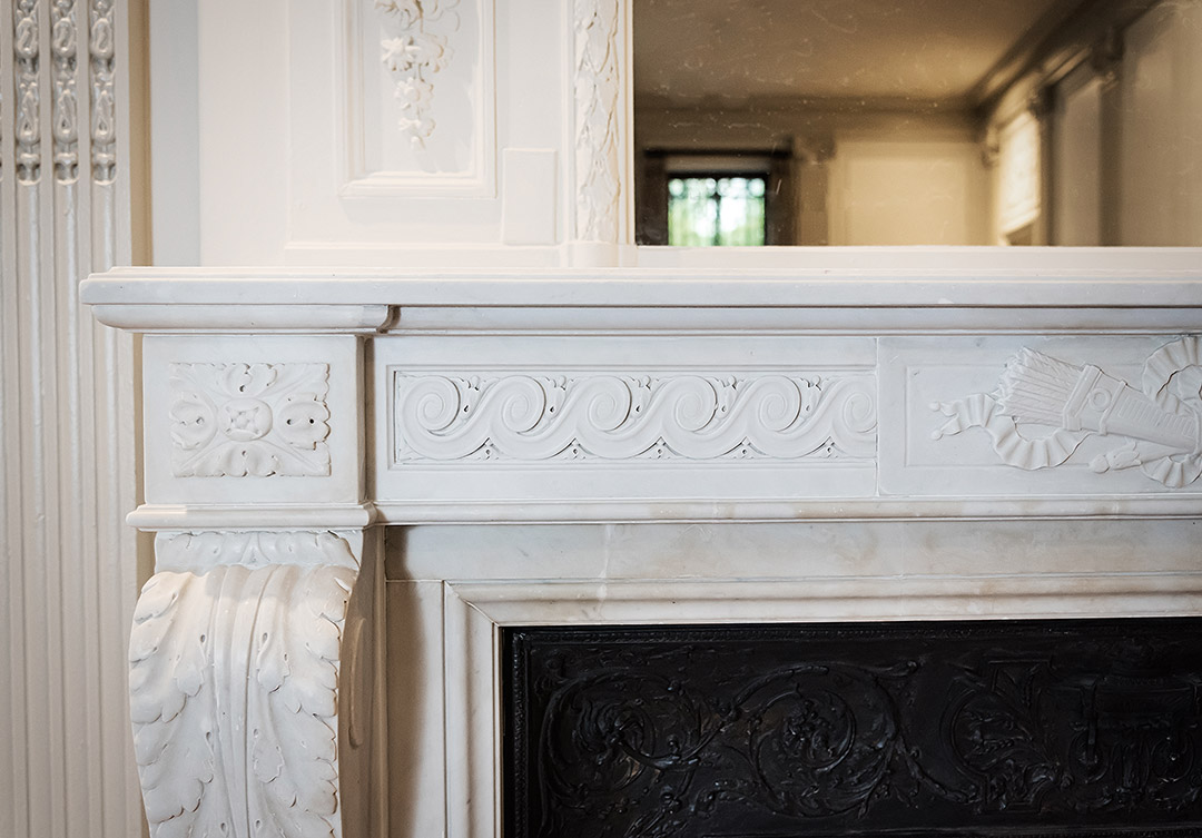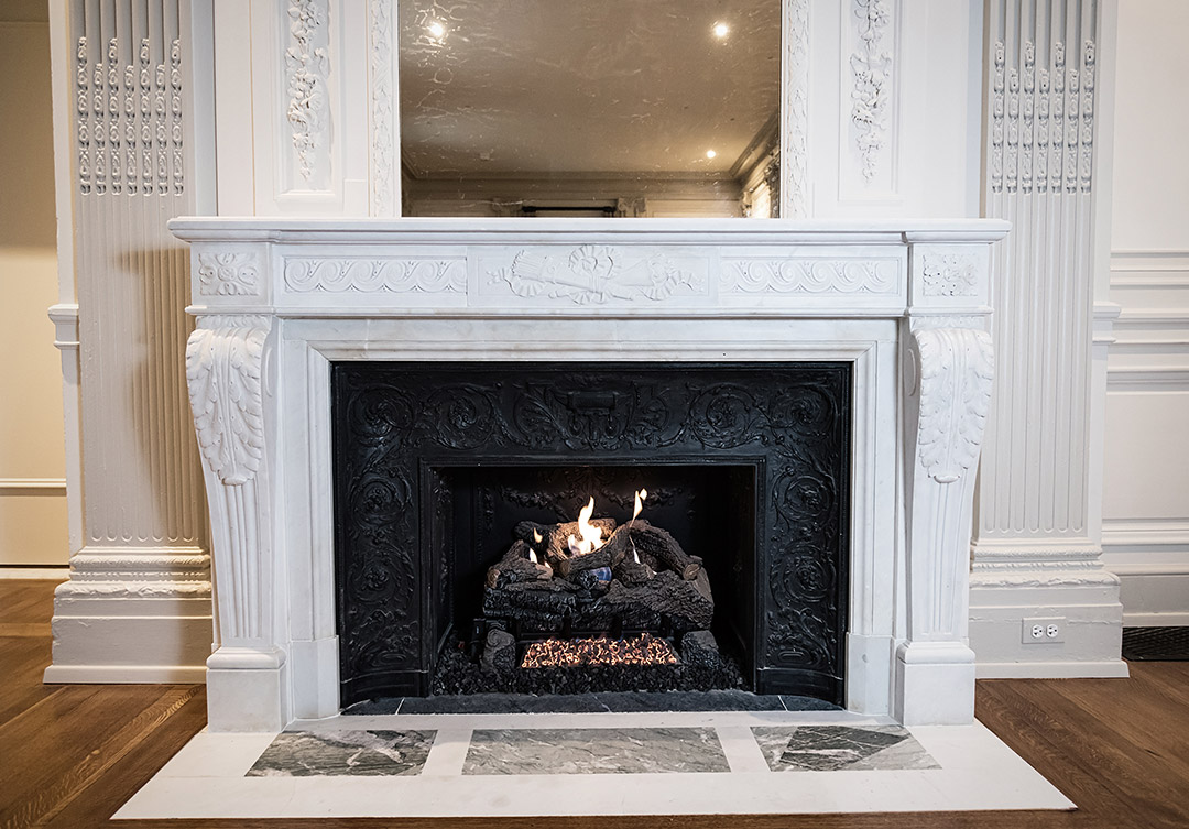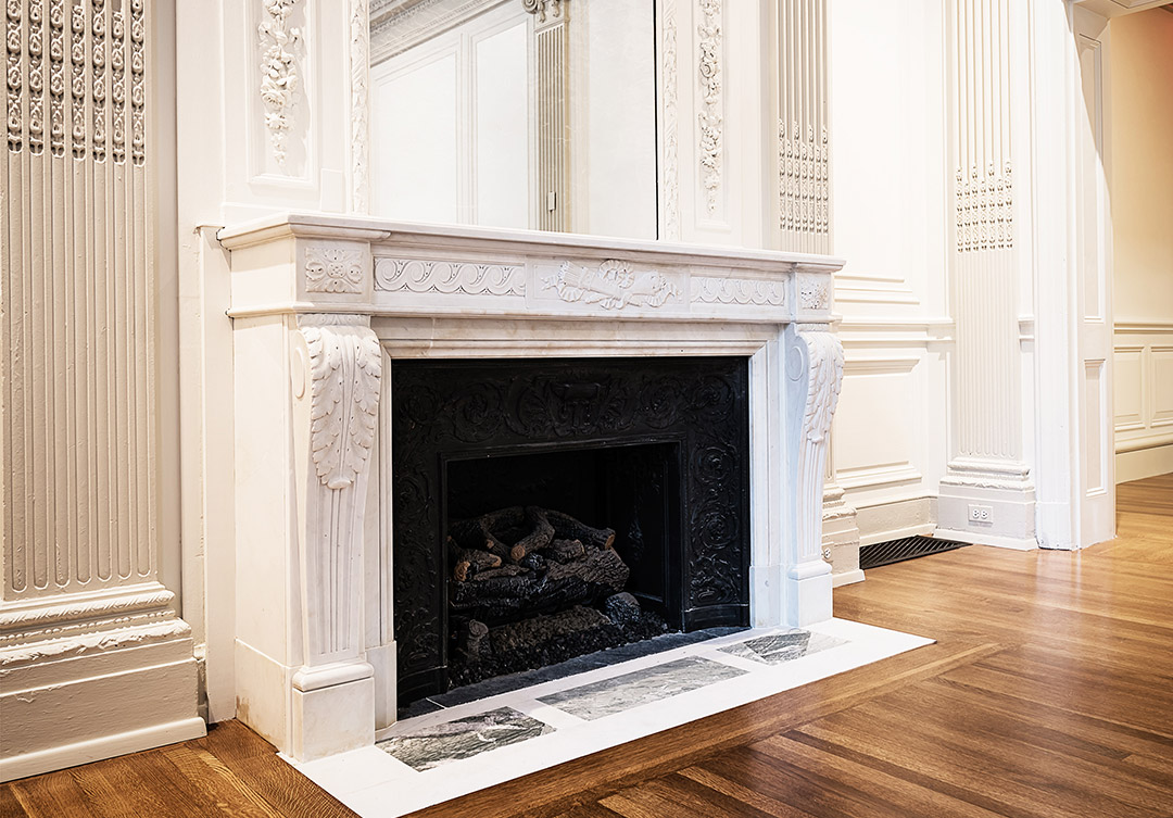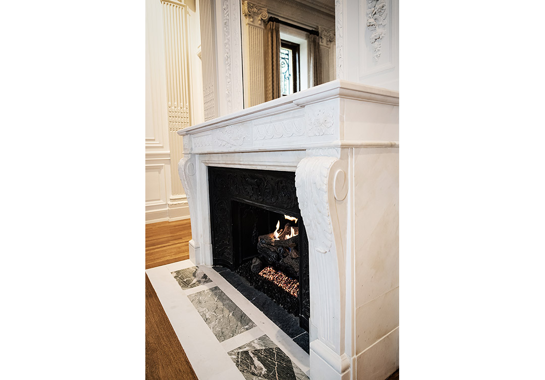 Rugo’s skilled masons installed the marble and decorative cast iron surround in its original location in the main foyer. The result; a classic treasure of marble craftsmanship restored for many to enjoy for years to come.