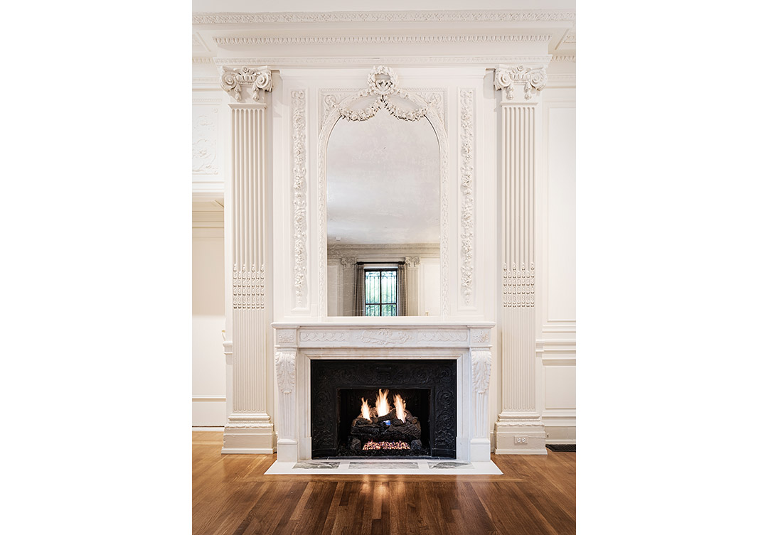 The Rugo team carefully removed all the pieces covered with dirt and filth; then, each piece was cleaned and cataloged, missing parts identified, and each section carefully examined to strategize how to determine which restoration treatment was necessary. From this, restoration was performed, and the fireplace rebuilt per criteria established by Rugo and the Historic Preservation Committee of the Cosmos Club.