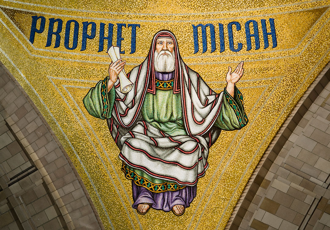 Each of the four corners (or pendentives) of the Incarnation dome displays a full mosaic. The four pendentives portray significant persons from the spiritual and prophetic accounts of the incarnation of Jesus. The southwest mosaic is the Prophet Jeremiah, the northwest is the Prophet Jeremiah, the northeast is the Matriarch Sarah, and the southeast is the Prophet Micah.