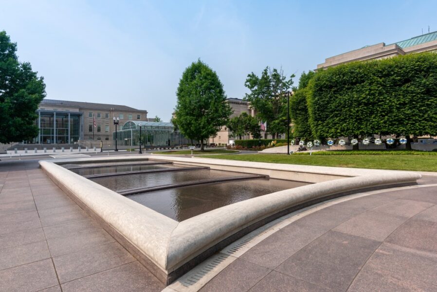 A place of honor, the National Law Enforcement Officers Memorial commemorates the nation’s fallen heroes, whose names are engraved in Adair Limestone to be remembered for generations. Originally dedicated in 1991, the memorial reached capacity by 2020 with over 22,000 names. To extend its life, Rugo Stone was engaged in a 2022 expansion that added a 15-inch carved stone coping atop the existing Radial Walls of Remembrance, along with replacement and repair of damaged stone pavers, curbs, walls, inscriptions, and pool elements.