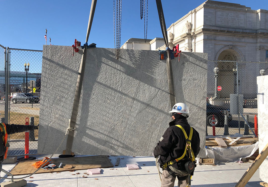 Rugo performed this work on schedule and with no punch list. There were no lost time accidents on this project, which is a statement to the rigid, safe practices employed on stone weighing up to 5,000 lbs.