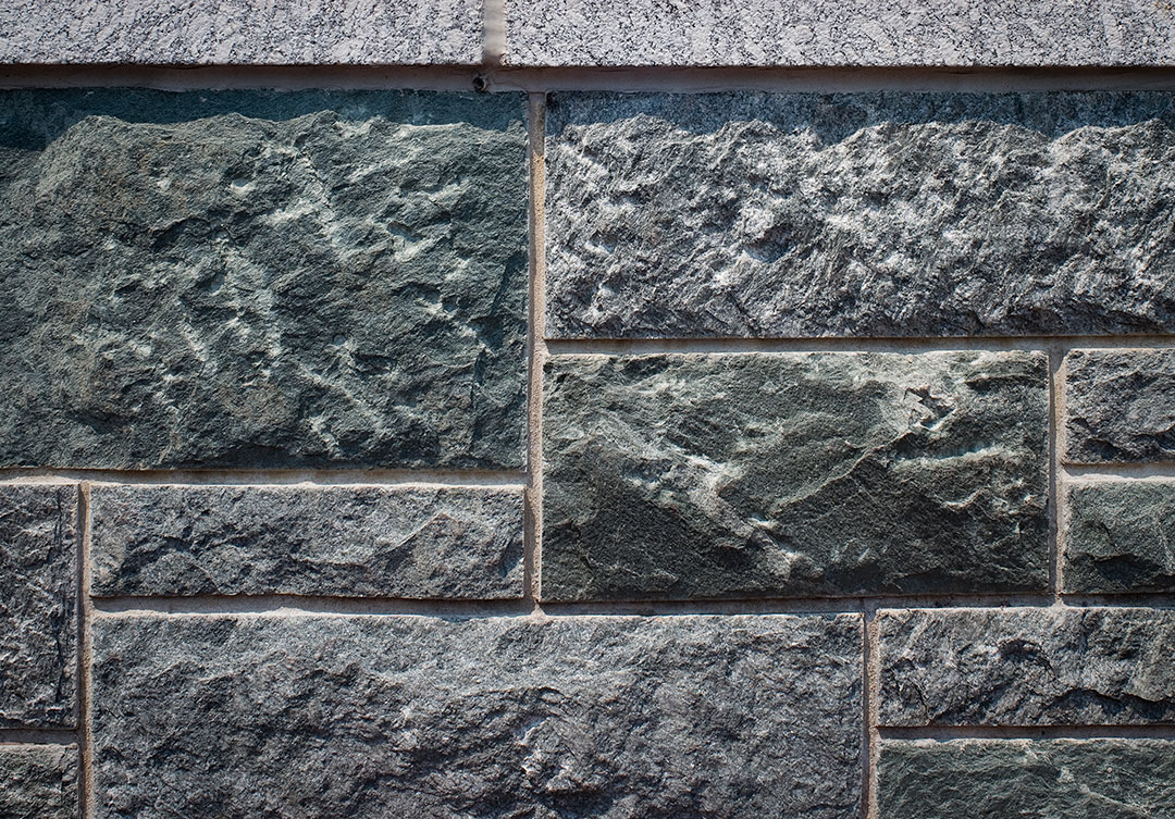 Services: Furnish sawn bed rubble stone, hand cut onsite, and install granite coping
